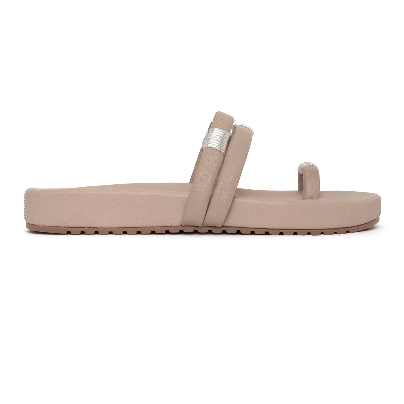 Sandalia Plana Lyra Taupe con Plata